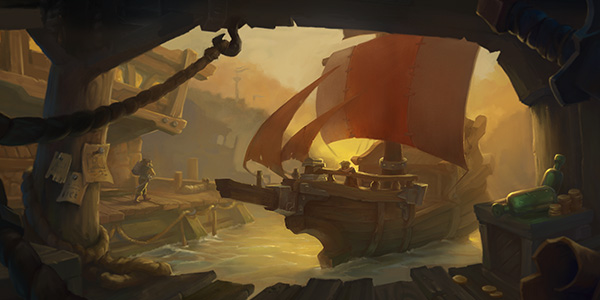 拉乌尔船长、尤朵拉船长和乔里船长在自由镇内饮酒共谋。他们各自领导的黑齿帮,水鼠帮和破浪海盗现正齐聚在哈兰·斯威提的铁潮突袭队麾下。
